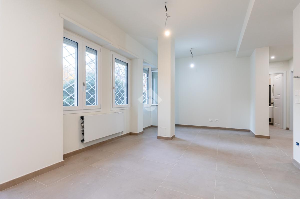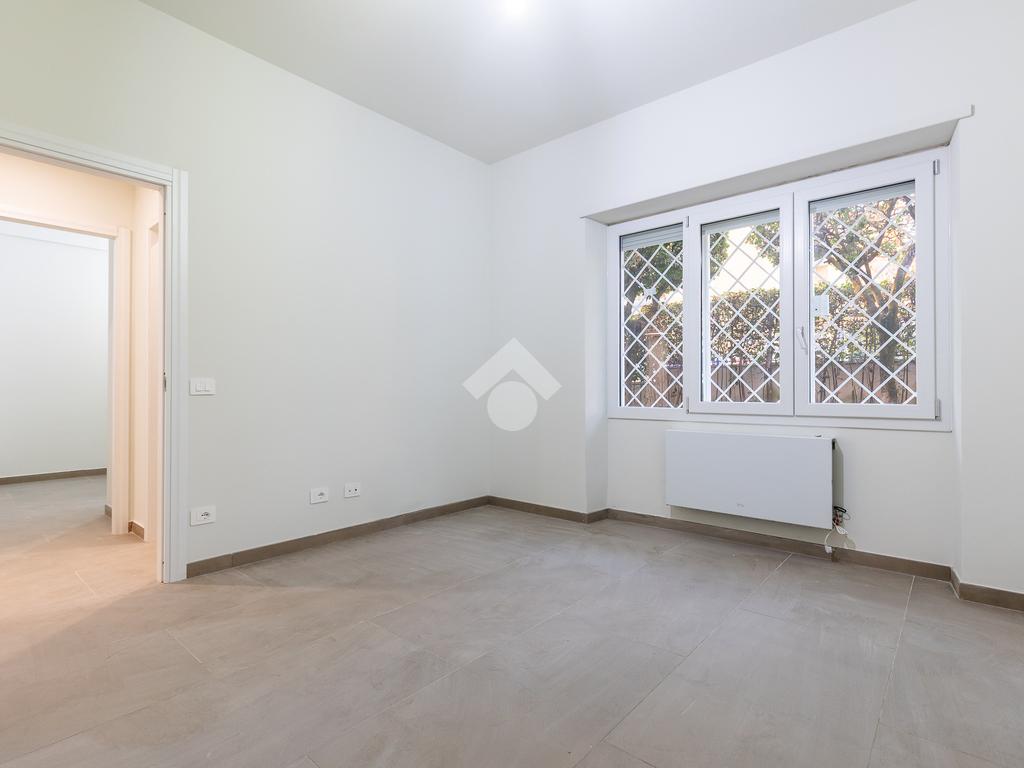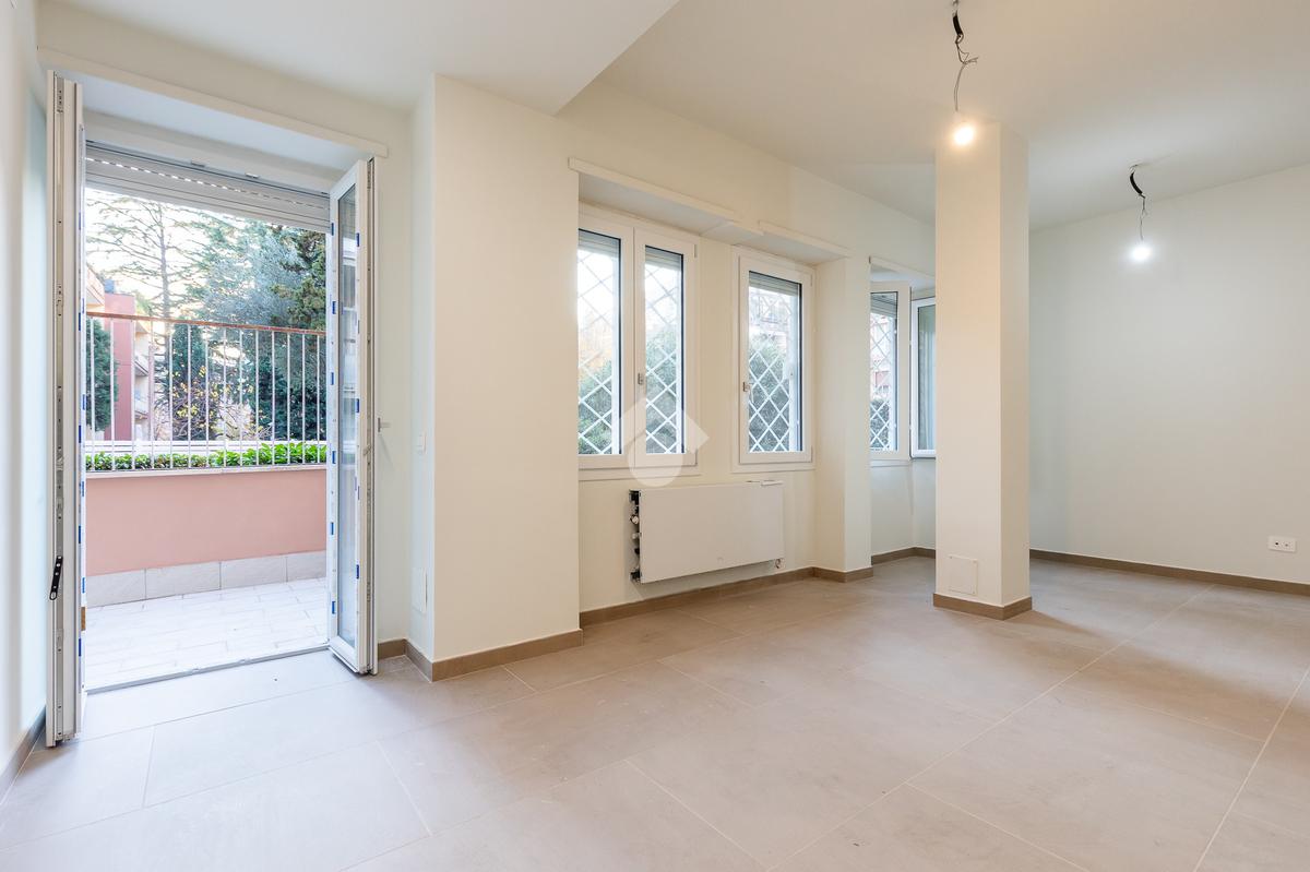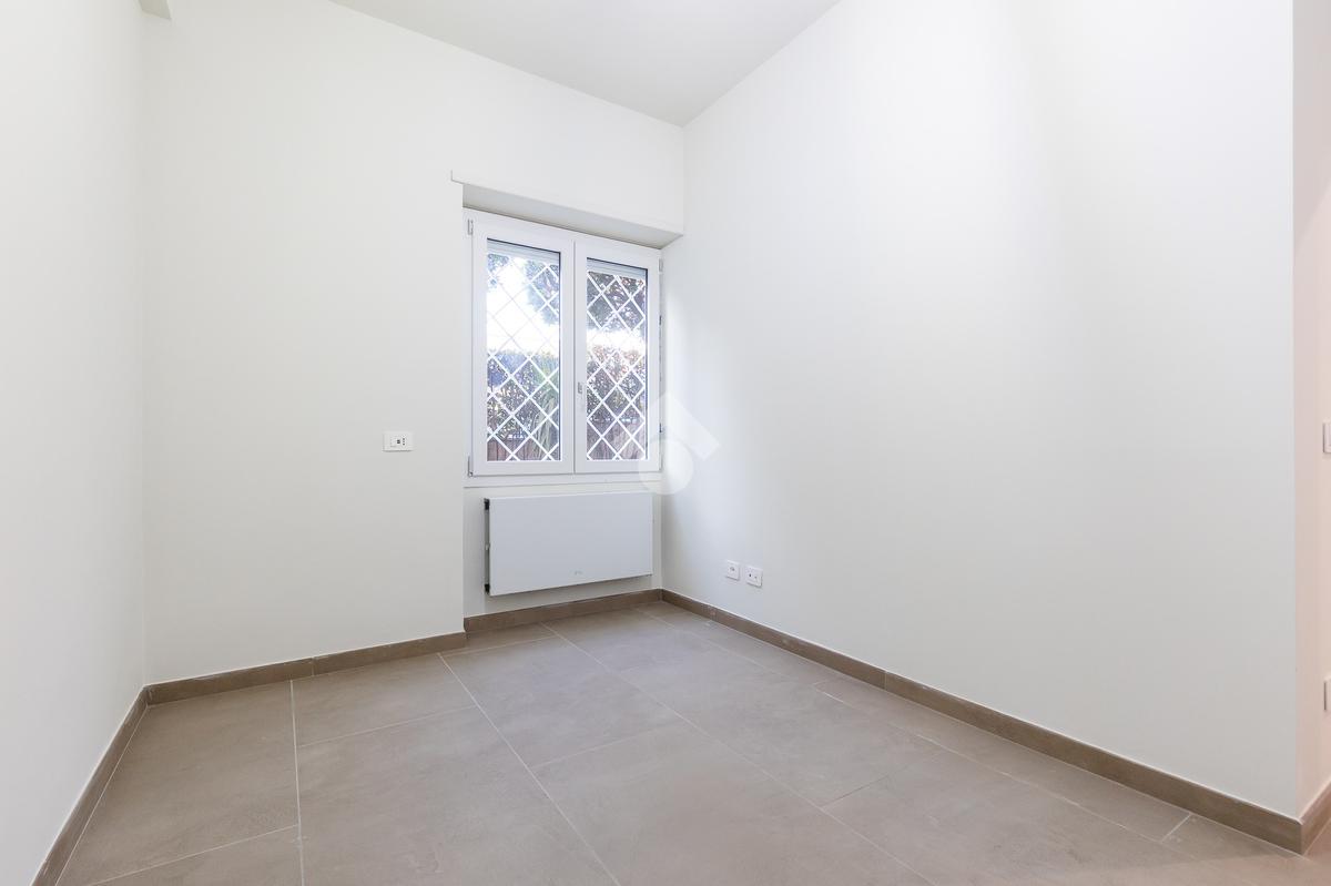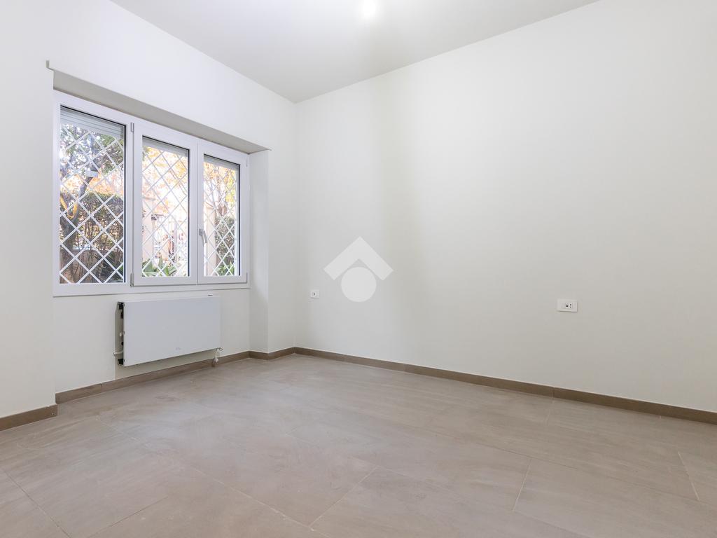 In via di Torrevecchia, in prossimità del Policlinico Agostino Gemelli e dell'Università Cattolica del Sacro Cuore, proponiamo in vendita un raffinato appartamento posto al piano terra di una palazzina in tinta con ascensore.