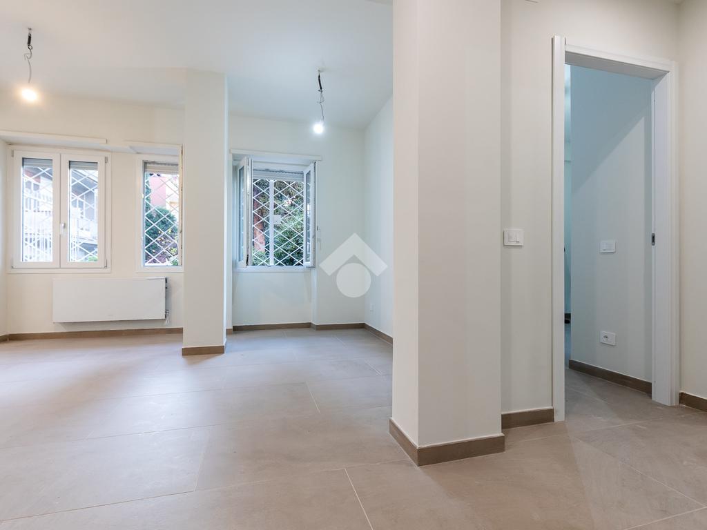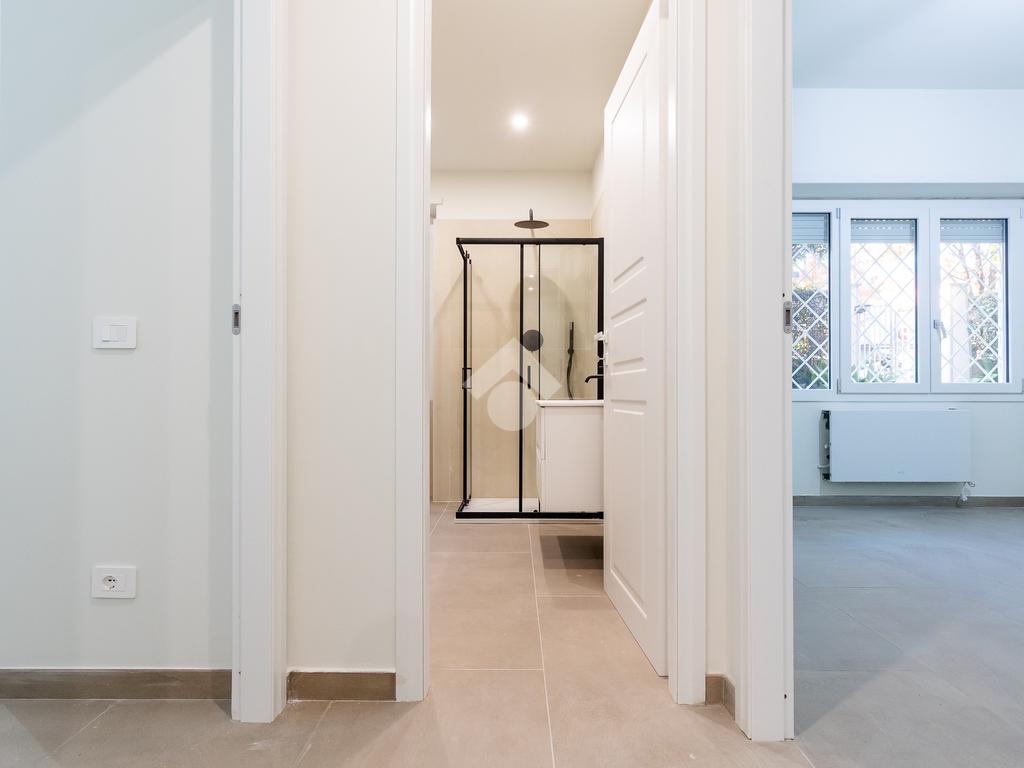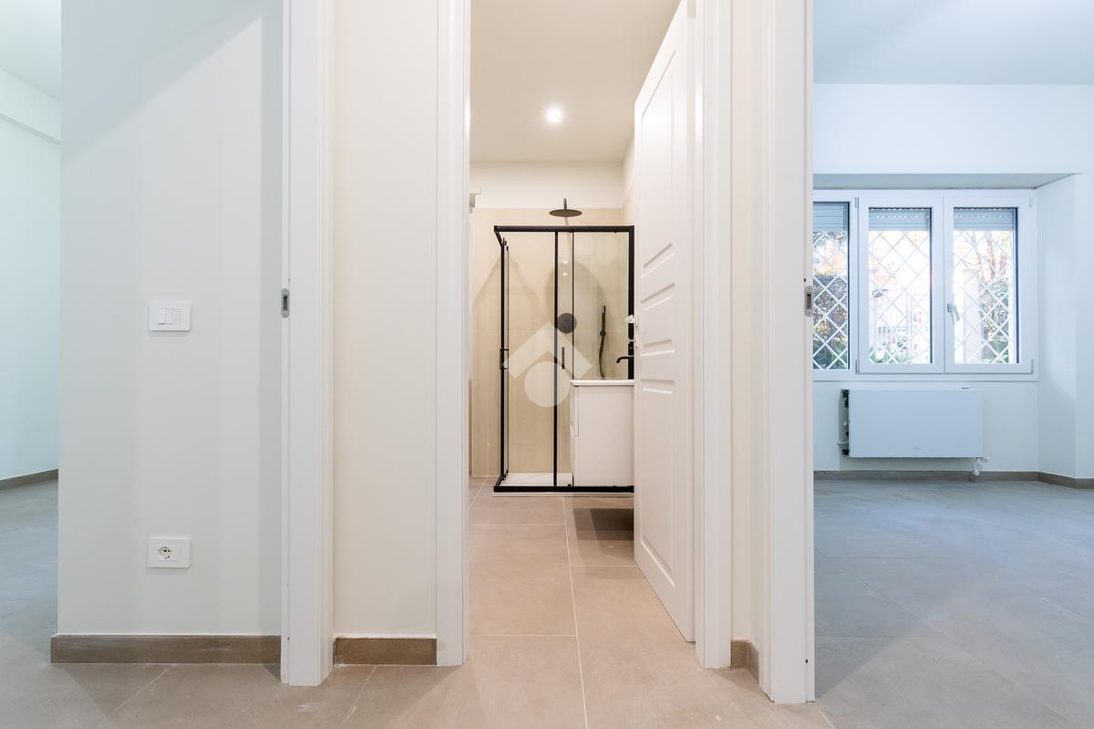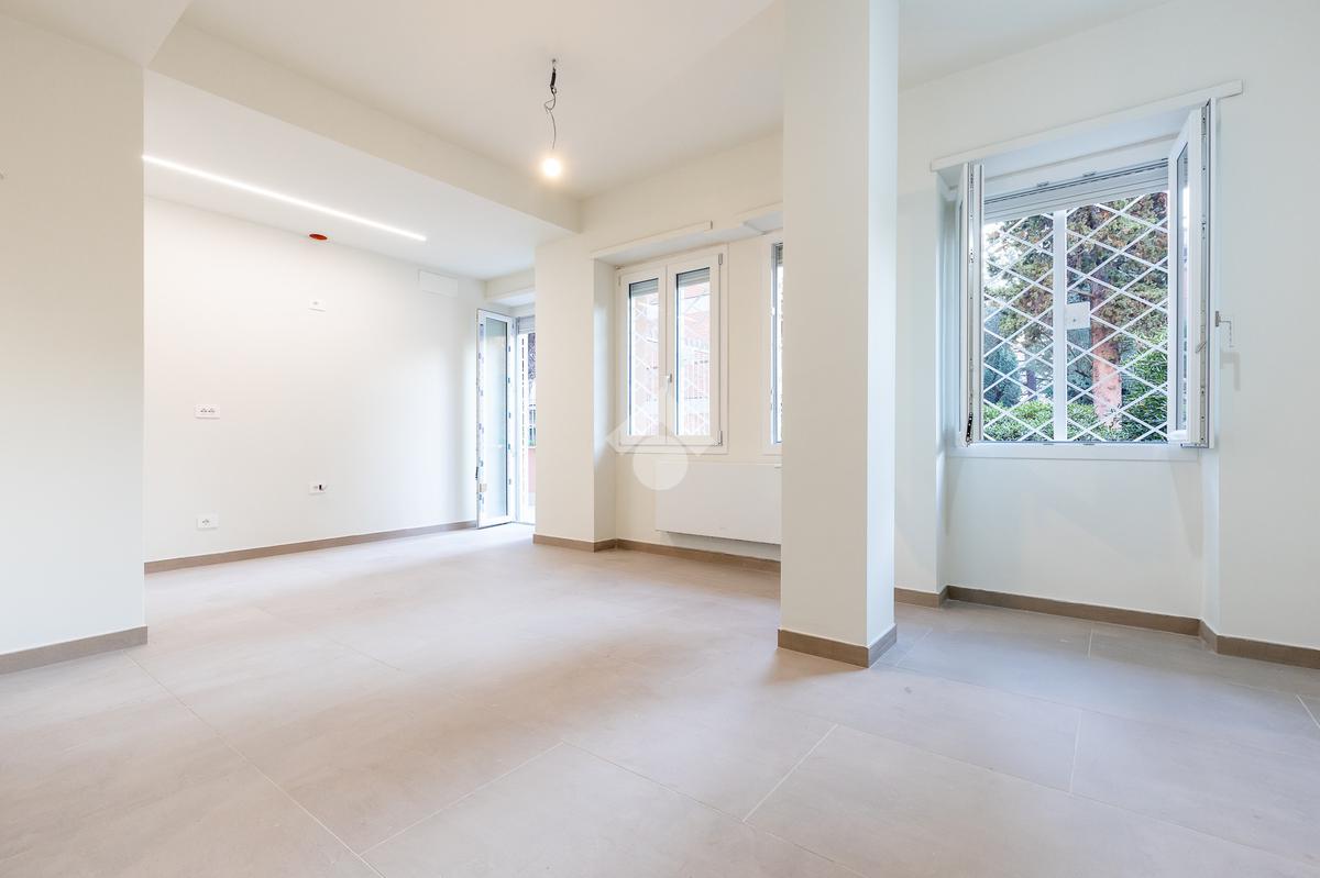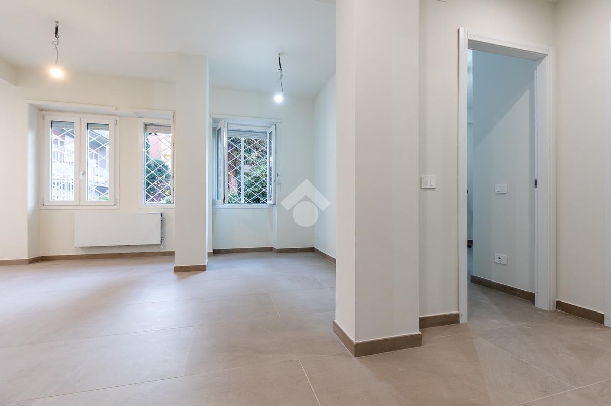 In via di Torrevecchia, in prossimità del Policlinico Agostino Gemelli e dell'Università Cattolica del Sacro Cuore, proponiamo in vendita un raffinato appartamento posto al piano terra di una palazzina in tinta con ascensore.