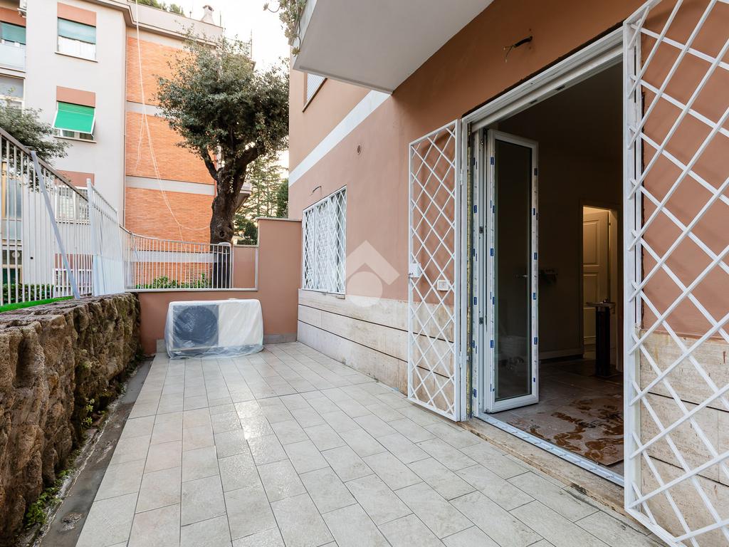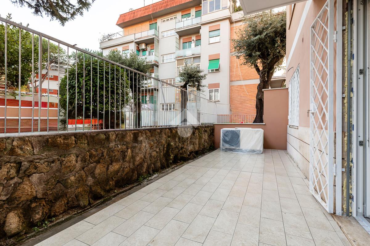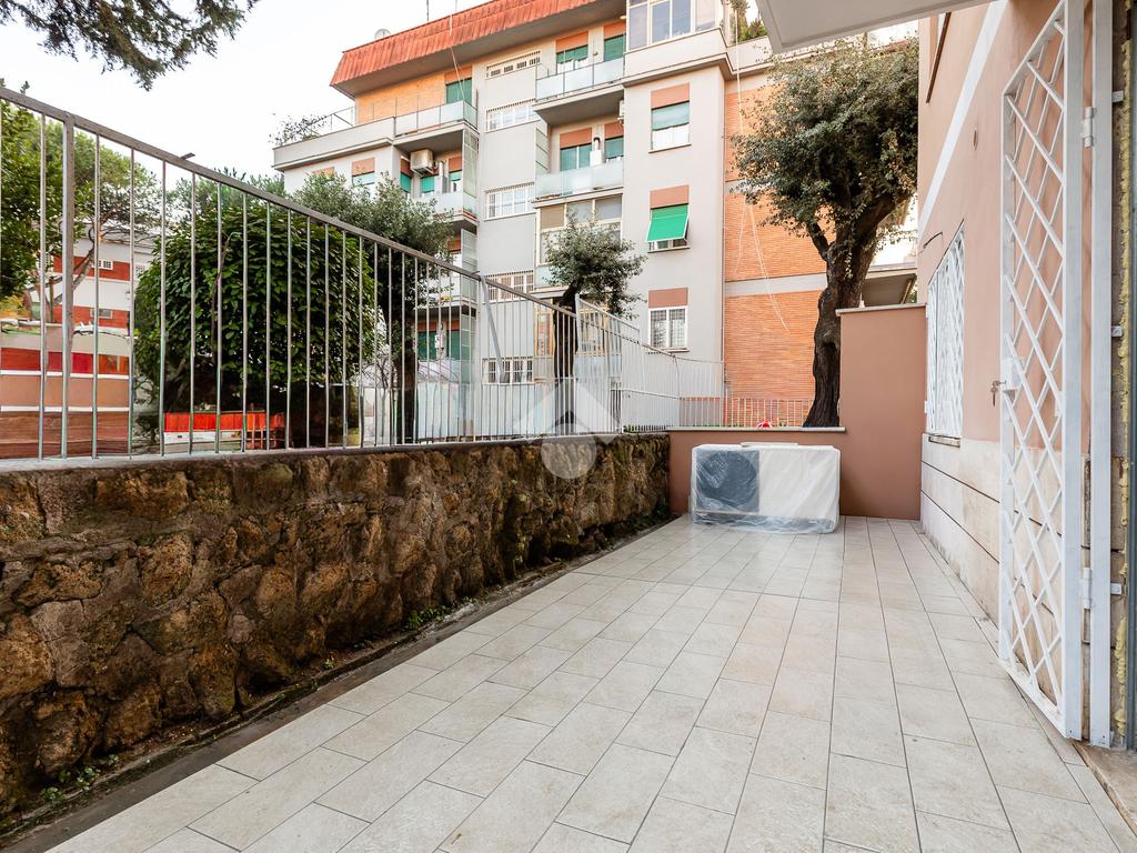 In via di Torrevecchia, in prossimità del Policlinico Agostino Gemelli e dell'Università Cattolica del Sacro Cuore, proponiamo in vendita un raffinato appartamento posto al piano terra di una palazzina in tinta con ascensore.