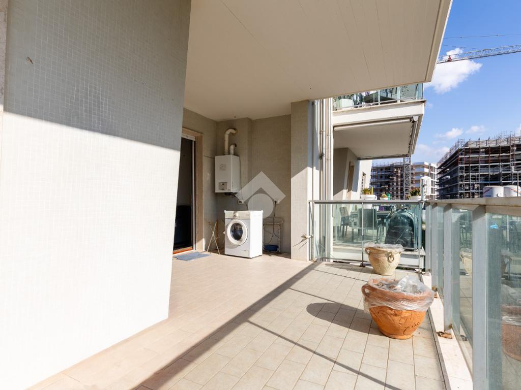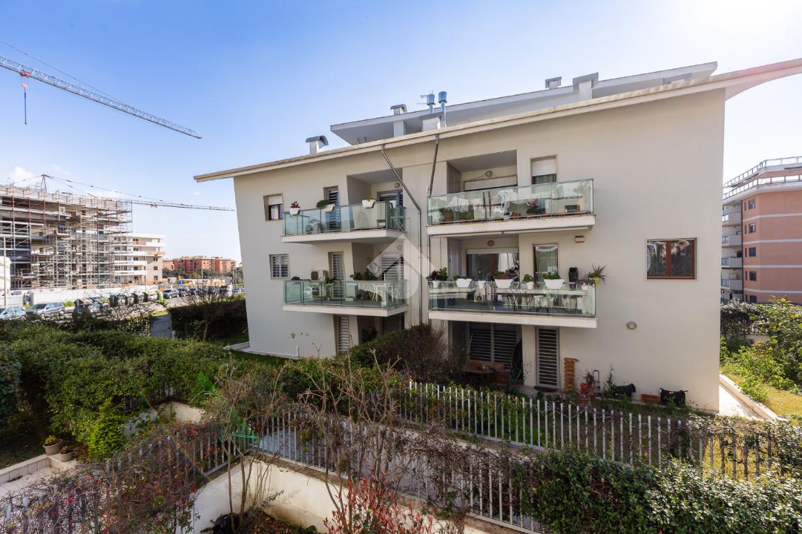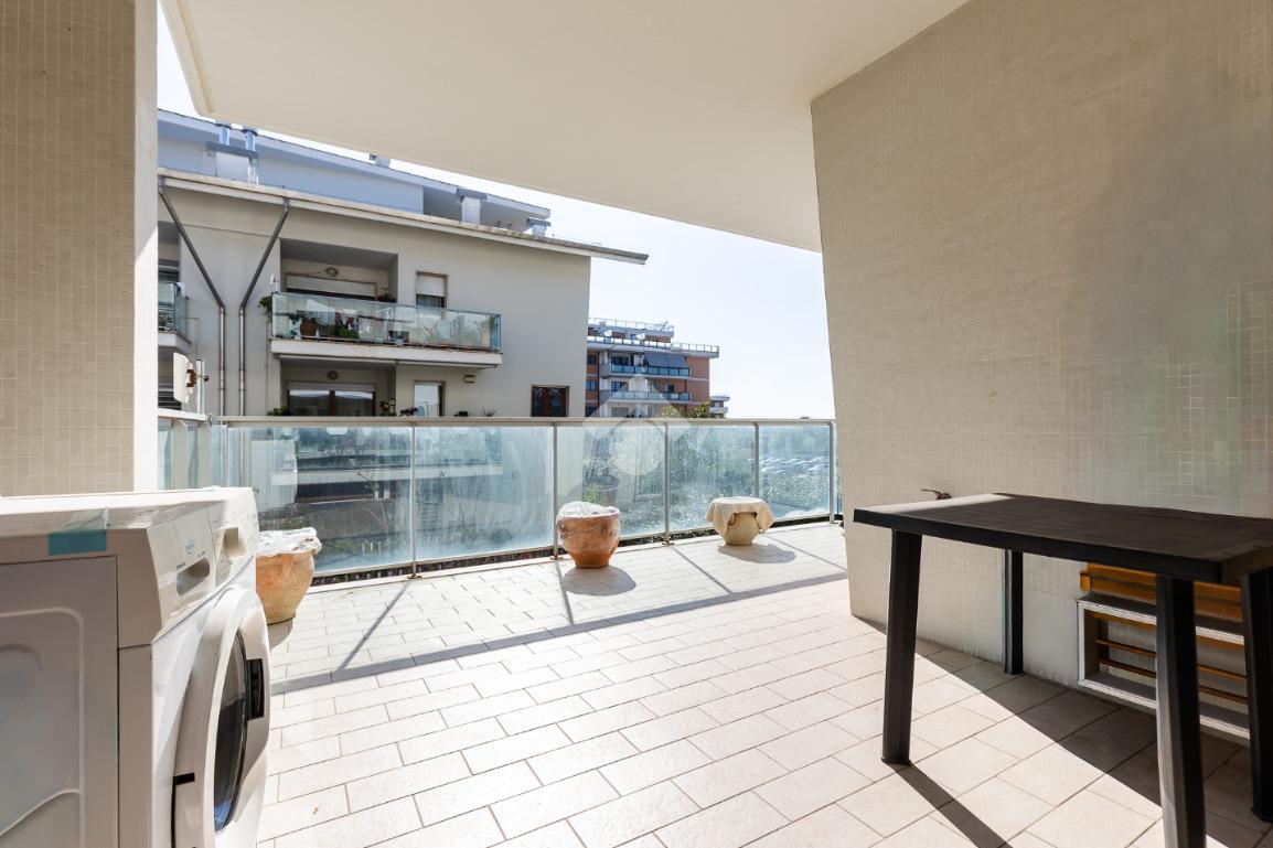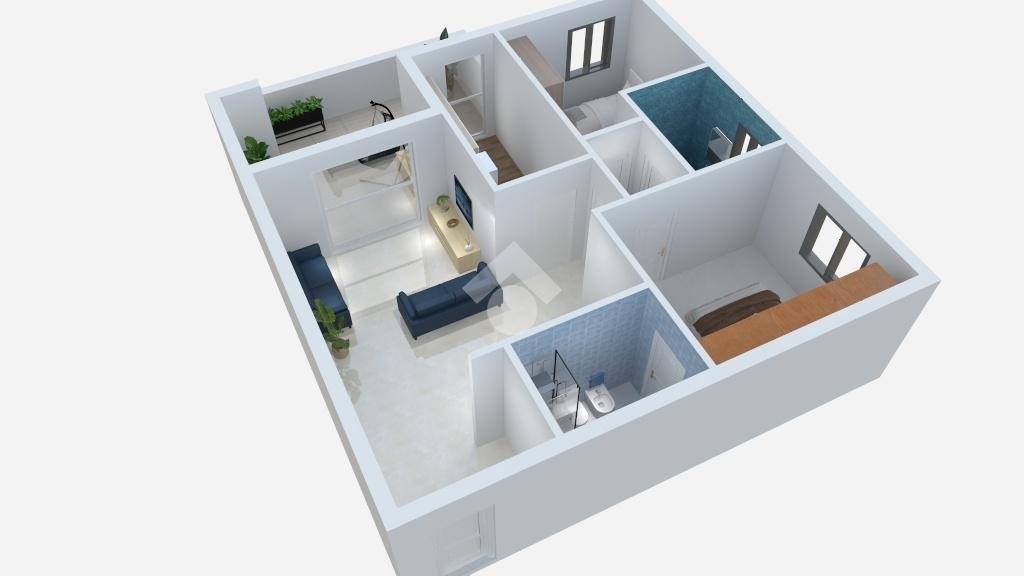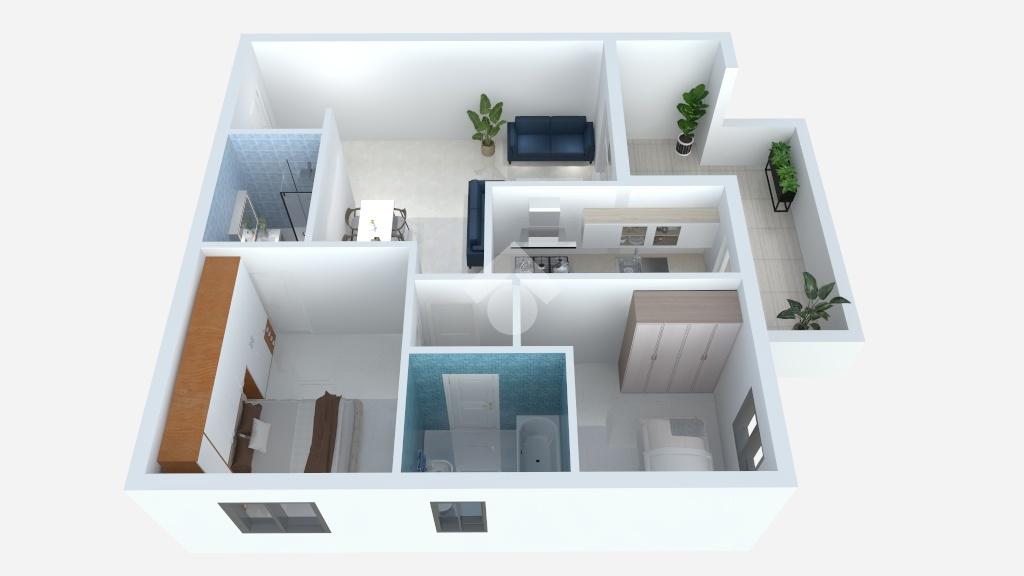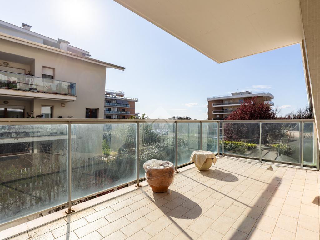 L' appartamento si trova al primo piano ed è composto al suo interno da un ingresso, soggiorno, cucina attrezzata, due camere, due bagni, terrazzo di 15 mq accessibile sia dal soggiorno che dalla cucina. Completa la proprietà una comoda cantina ed un ampio posto auto coperto.