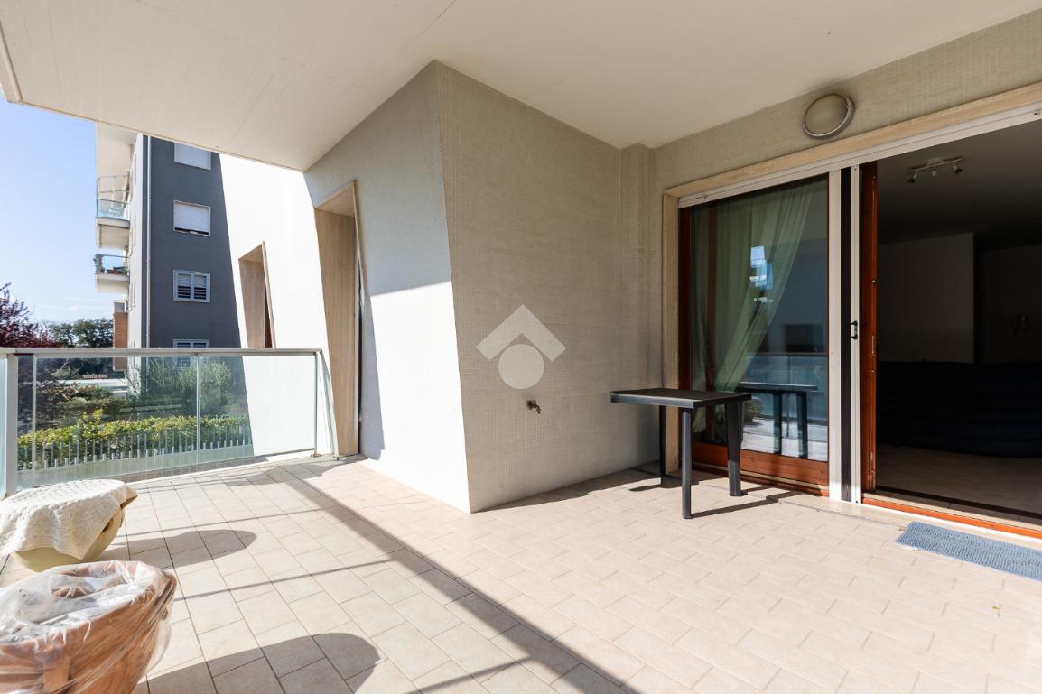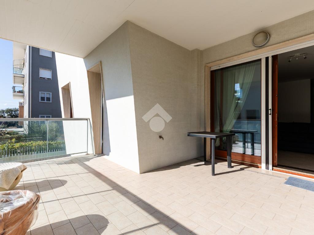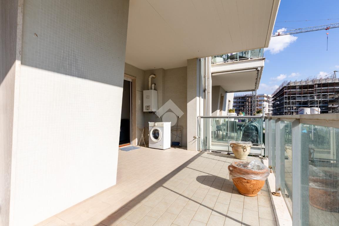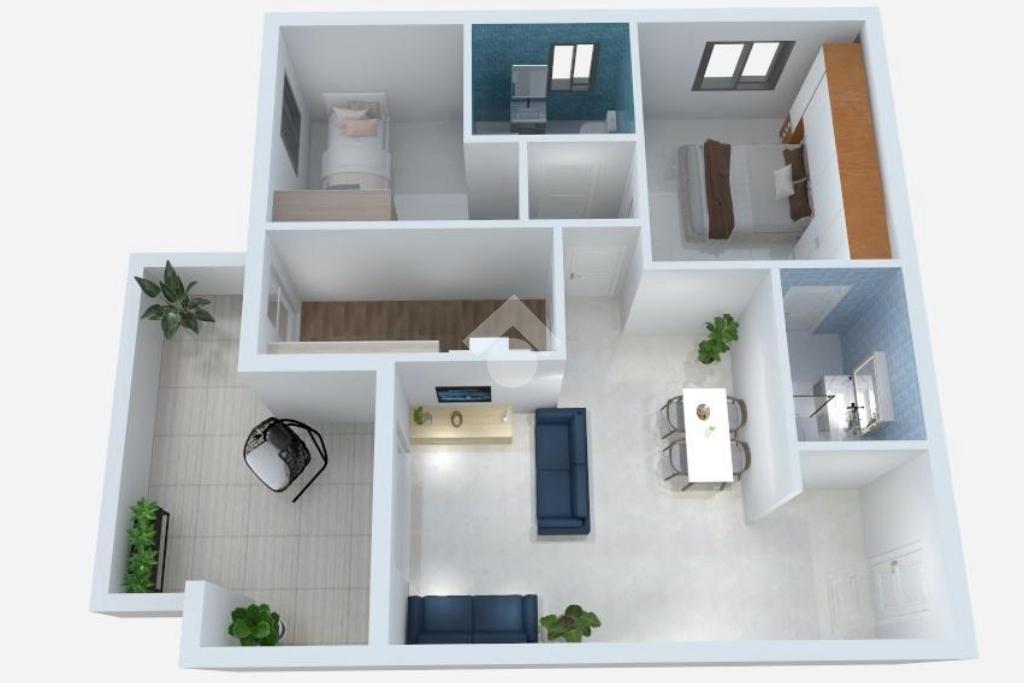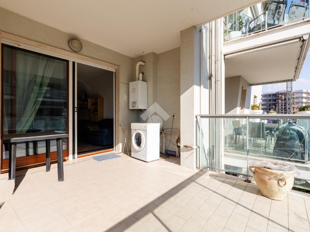 L' appartamento si trova al primo piano ed è composto al suo interno da un ingresso, soggiorno, cucina attrezzata, due camere, due bagni, terrazzo di 15 mq accessibile sia dal soggiorno che dalla cucina. Completa la proprietà una comoda cantina ed un ampio posto auto coperto.