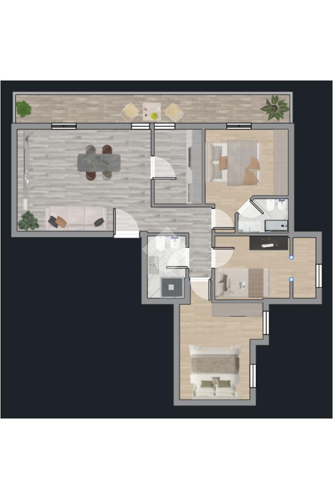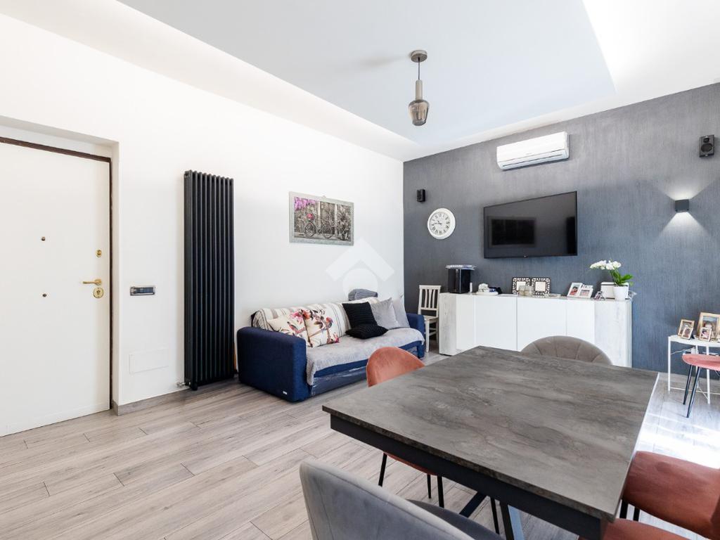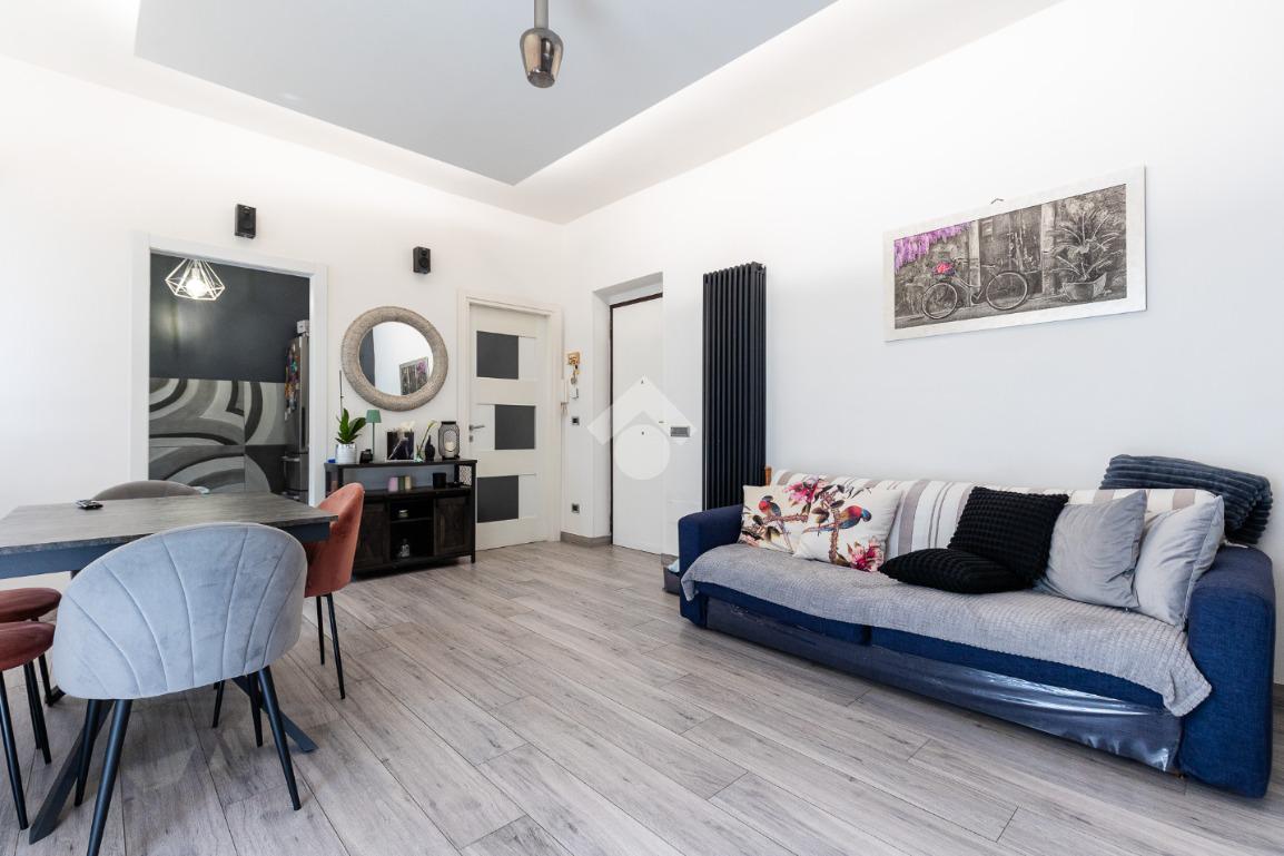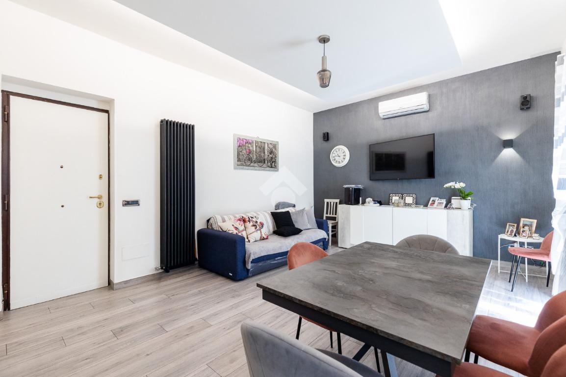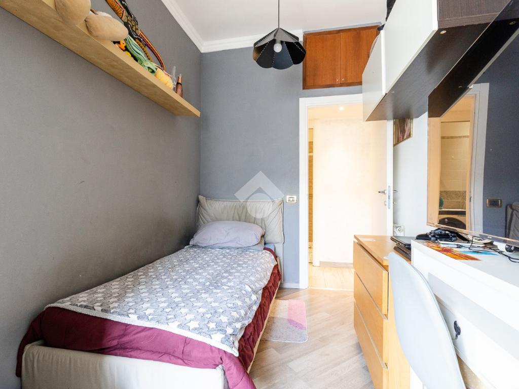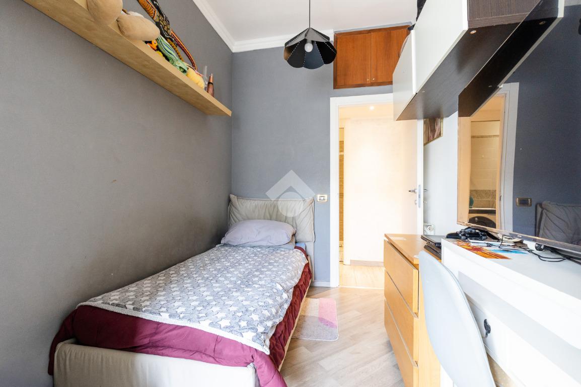 Situato al piano medio di un edificio civile, l'immobile è stato ristrutturato nel 2023, garantendo comfort e qualità. L'appartamento si compone di quattro locali ben distribuiti: una camera da letto, due camerette, due bagni moderni e una zona giorno luminosa con cucinotto separato. La presenza di un balcone offre uno spazio esterno privato, perfetto per momenti di relax.